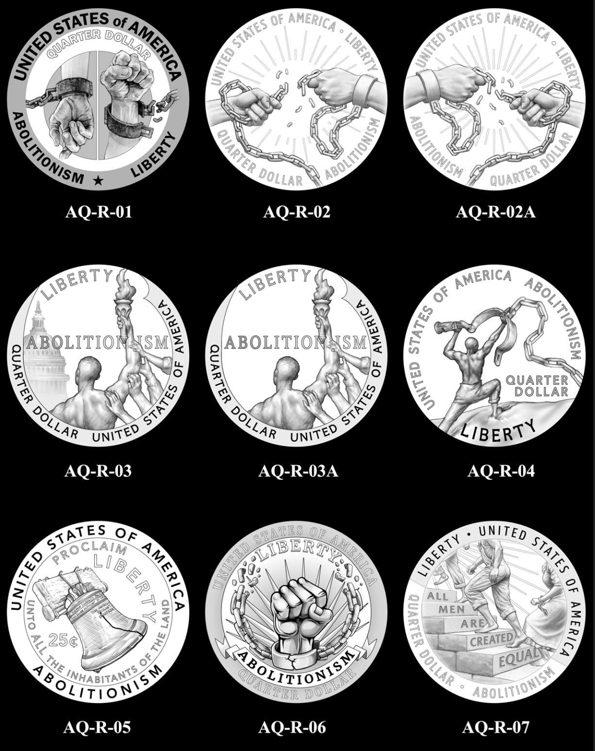 Designs exploring themes of Abolition, Suffrage, and Civil Rights reviewed by the Citizens Coinage Advisory Committee in accordance with The Circulating Collectible Coin Redesign Act of 2020
